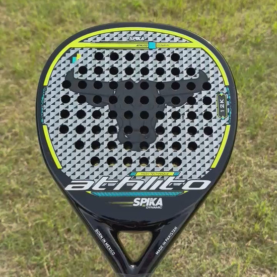 Elevate your game with the Athlito Spika, crafted from premium 12K carbon fiber for unparalleled power and performance. Designed with an Italian tear drop mold, this racket offers the perfect balance of power and control, ideal for explosive smashes and precise shots. The fully 12K carbon frame and face ensure maximum durability, while the 6x6 hole pattern optimizes energy transfer for powerful play. Weighing between 355 to 375 grams, this racket offers the perfect combination of smash and balance. The EVA black foam core enhances touch and control, and the EVA soft double-layered grip ensures comfort during long matches. Made from top-tier imported materials for a professional-quality experience.