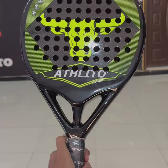 Step up your game with the Athlito Supra, featuring the innovative Spanish Double Window mold for unmatched power and control. Built with top-tier 3K carbon fiber and EVA black foam, this racket guarantees durability and peak performance. totally 3k carbon frame and face, along with a 6x6 hole pattern, optimize energy transfer for powerful smashes. Weighing between 355 to 375 grams, it offers an ideal balance of precision and agility. The EVA soft double-layered grip ensures maximum comfort and touch control, giving you the confidence to excel in every match. Crafted with premium imported materials to redefine your playing experience.